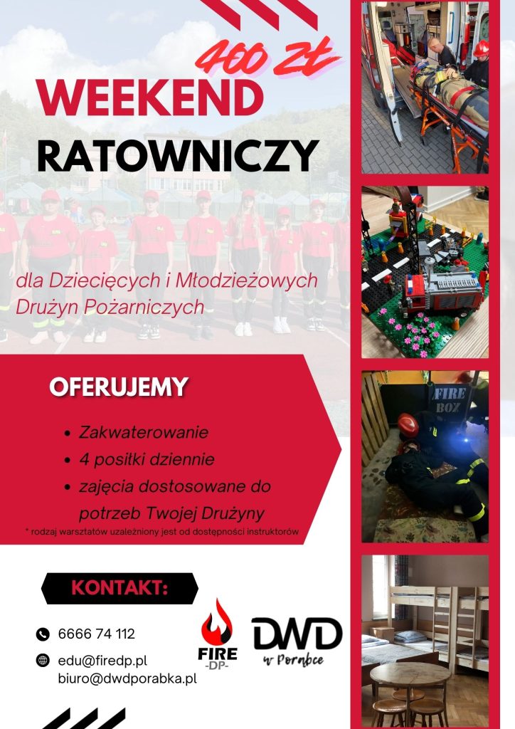 – Weekend Ratowniczy – dla zainteresowanych drużyn. 3 dniowe warsztaty z pierwszej pomocy, ochrony przeciw pożarowej lub innych technik ratowniczych. Zależnie od potrzeb.